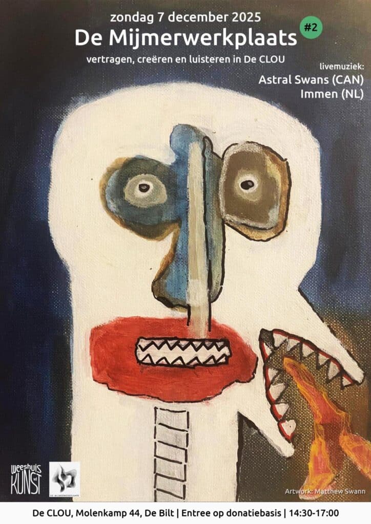 Op zondagmiddag 7 december 14.30 uur is de tweede Mijmerwerkplaats in de Clou! Molenkamp 44 De Bilt Op deze middag kun je vertragen en nodigt uit om stil te staan,…